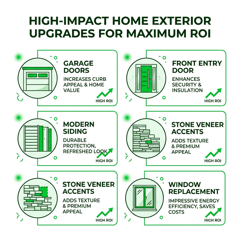 When considering home exterior upgrades, it’s wise to focus on projects that not only enhance aesthetics and functionality but also offer a strong return on investment (ROI). According to recent reports, such as the JLC annual Cost vs. Value Report, certain exterior projects consistently rank among the highest-ROI home improvements. These often include garage doors, entry doors, siding, and stone veneer. Investing in these areas can significantly increase your property’s value, making your home more attractive to potential buyers should you decide to sell.