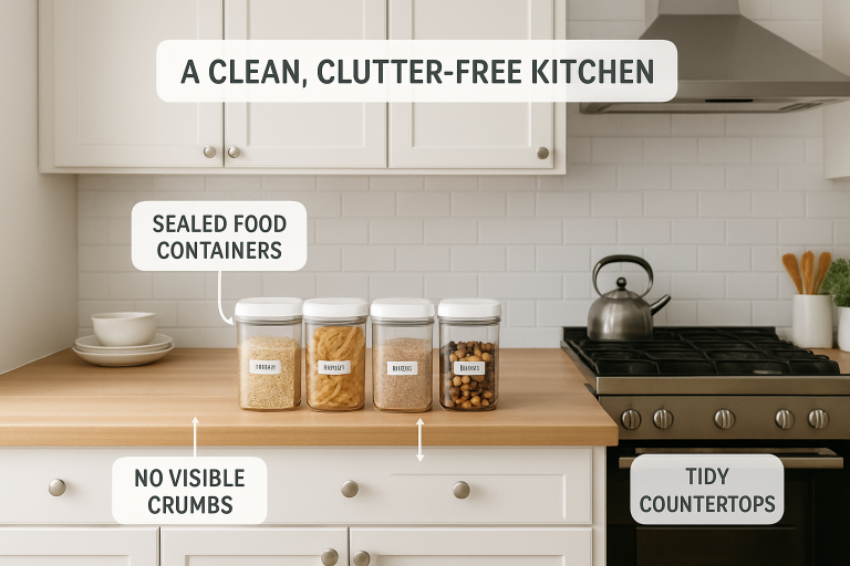 Improper food storage is a primary factor leading to cockroach infestations. Always keep food, including pet food, in airtight containers. Pantry staples such as rice, flour, and cereal should be transferred to sealed jars, reducing the chance that a cockroach can access or contaminate these foods. Do not leave food out overnight or allow crumbs to collect in hard-to-reach spots like behind the stove or under the refrigerator. Empty and clean trash cans regularly, using lids that prevent pests from accessing the contents. Taking out the garbage daily is a habit that helps deter other pests, such as ants or rodents. Cleaning up spills immediately can eliminate future attractants for cockroaches searching for meals, and rinsing recyclables before storing them will prevent residual odors that might draw pests indoors.